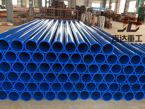 吉達(dá)重工第六代泵車雙層泵管、雙層彎頭引進(jìn)超音頻淬火設(shè)備,高頻內(nèi)壁熱處理工藝,使內(nèi)壁表面形成58-68HRC、層3.2-3.7mm,使管道壽命達(dá)到60000-80000立方,比原來(lái)的普通泵車管道提高了3-5倍,延長(zhǎng)了產(chǎn)品的使用壽命。